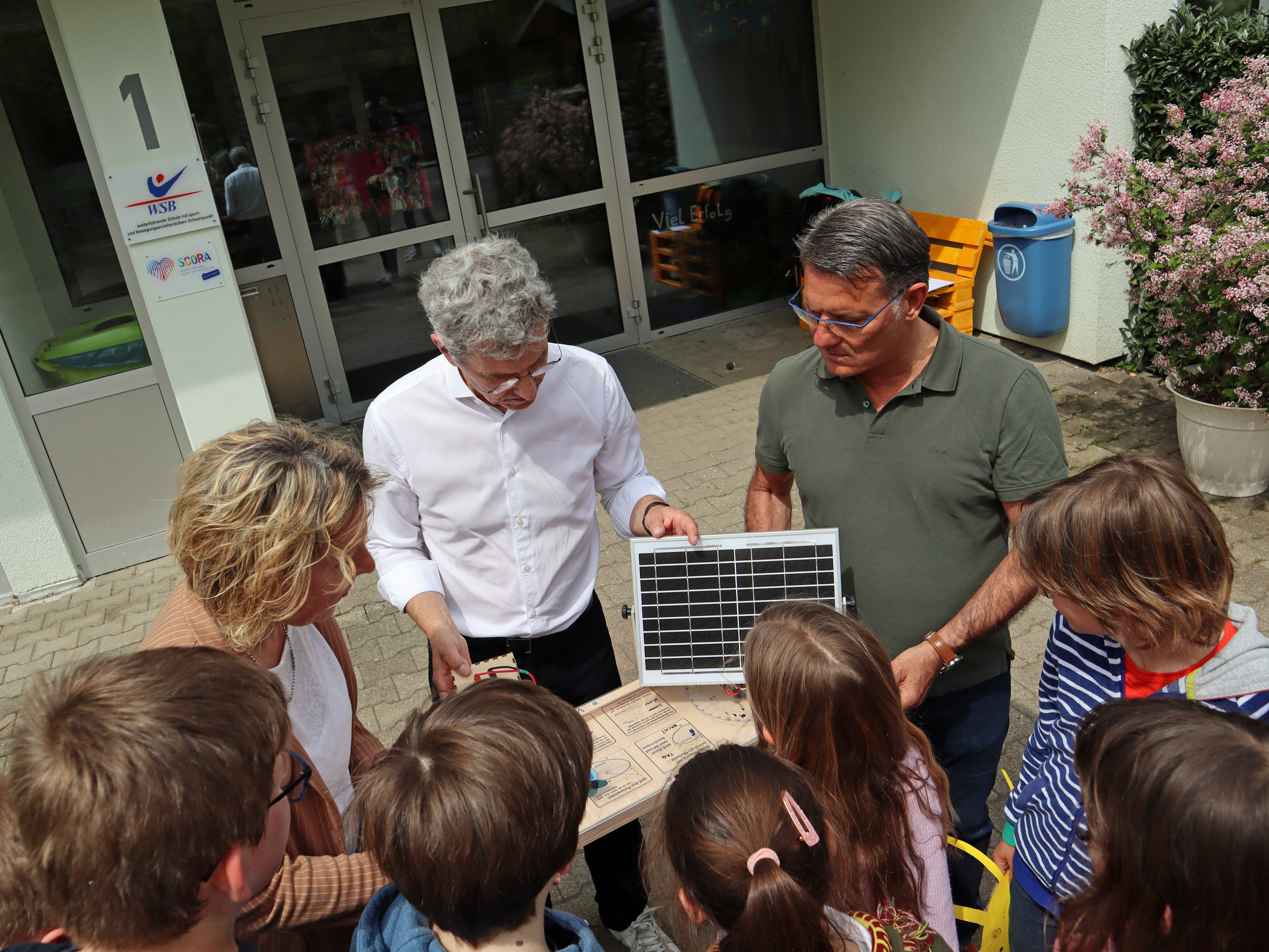 Das dafür nötige Experimentiermaterial wurde heute von den Stadtwerken und SfKB-Geschäftsführer Matthias Schmuderer übergeben und präsentiert. Dabei anwesend waren neben der Schulleitung, Stadtwerke Stuttgart Geschäftsführer Peter Drausnigg auch der Forscherclub der Waldschule, eine AG von naturwissenschaftlich begeisterten Schülerinnen und Schülern, stellvertretend für die Schulgemeinschaft. Besonders passend ist das Thema Sonnenenergie, da dieses Schuljahr verstärkt unter dem Motto der Nachhaltigkeit steht und die Landeshauptstadt Stuttgart mit ihrer Lage im Südwesten Deutschlands auch über ein großes Sonnenpotenzial verfügt. Die Stadtwerke Stuttgart als Motor der Energiewende wollen neben den Jüngsten auch Bürgerinnen und Bürger sowie Unternehmen dabei unterstützen, in Stuttgart noch mehr sauberen Strom aus Sonnenenergie zu produzieren.