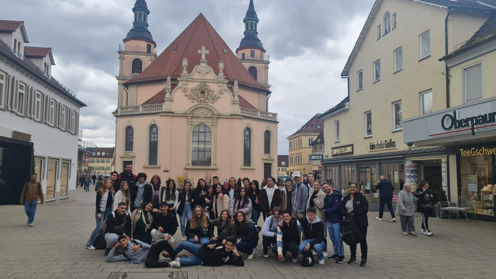 Projekte in der Schule, Besuche und Besichtigungen in Stuttgart, Ludwigsburg, Waldenbuch und im Europa-Park standen auf dem Programm. Auf der Stuttgart-Tour standen neben dem Besuch des Mercedes-Museums, einer Besichtigung der Innenstadt und einem Besuch des Fernsehturms zwei besondere Termine an: Die deutschen und die israelischen Schüler besuchten gemeinsam das „Zeichen der Erinnerung“ am Nordbahnhof, dem Ort der Deportation von 2600 Juden aus der Region Stuttgart von 1941 bis 1945 in die Konzentrations- und Vernichtungslager. Dass 80 Jahre nach diesen schrecklichen Ereignissen israelische und deutsche Jugendliche Hand in Hand gedenken, singen und das Totengebet (Kaddisch) sprechen, war ein sehr berührender Moment. Dass unsere Schulpartnerschaft angesichts der deutschen Geschichte ganz besonderen Sinn macht, zeigte dieser Moment genauso wie der anschließende Besuch in der Stuttgarter Synagoge. Dort nahmen die Schülerinnen und Schüler am Gottesdienst zur Einleitung des Sabbat (Kiddusch) teil. Dass war nicht nur für die deutschen Teilnehmenden eine Ersterfahrung, sondern auch für die Gäste aus Kiryat Shmona, die von zu Hause die sephardische Gottesdienstform gewöhnt sind und hier die aschkenasische erlebten.