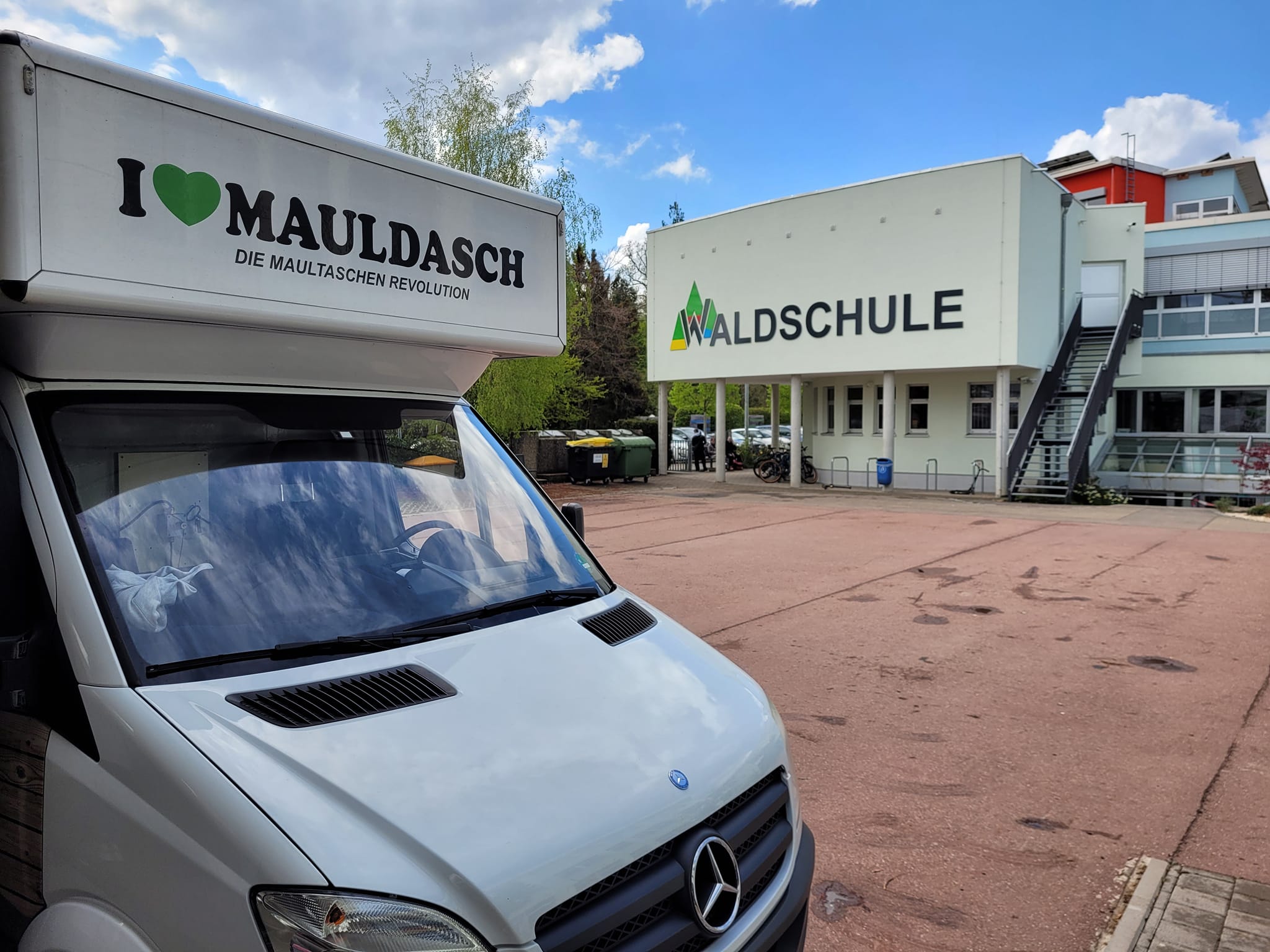 Um die Abiturientinnen und Abiturienten während der Prüfung nicht durch Lärm aus der Mensa zu stören, ist heute ein Maultaschen-Truck auf dem Schulhof im Einsatz. Es schmeckt und macht Spaß.